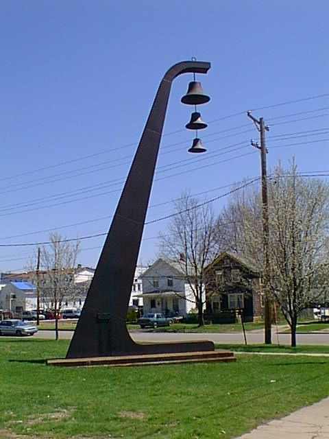 On the north side of Fourth Ave., near Union Street, in Warren is a bell tower with 3 bronze bells on it. This tower, designed by Joe DeFrees and erected in March of 1981, is by his description, "a touch of modern art to add to Warren's beauty."