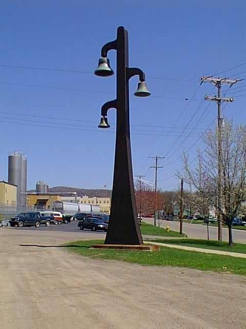 In the continuing description of the legacy of bells left by the late Joe DeFrees, I would like to conclude with the bells in front of the Charles Warren Stone Museum and those beside the Allegheny Valve Office on Third Ave. |